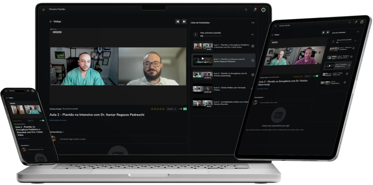 Um curso exclusivo que irá te preparar para a realidade do primeiro plantão. Cenários dos hospitais, condutas e habilidades indispensáveis. Destaque-se desde o primeiro dia de atuação.